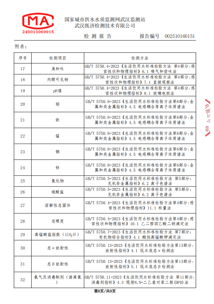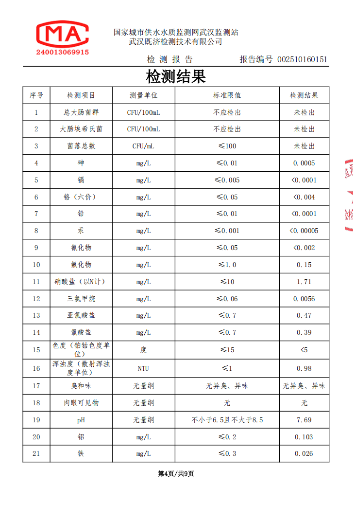 2025年10月马店水厂二次供水末梢水水质检测公告