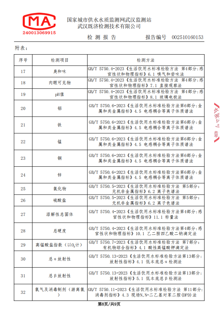 2025年10月仙女水厂二次供水末梢水水质检测公告