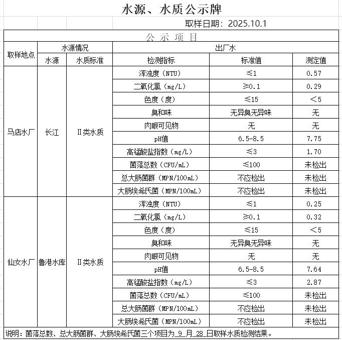2025年10月1日水质公告