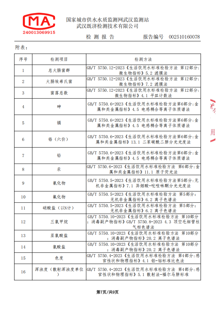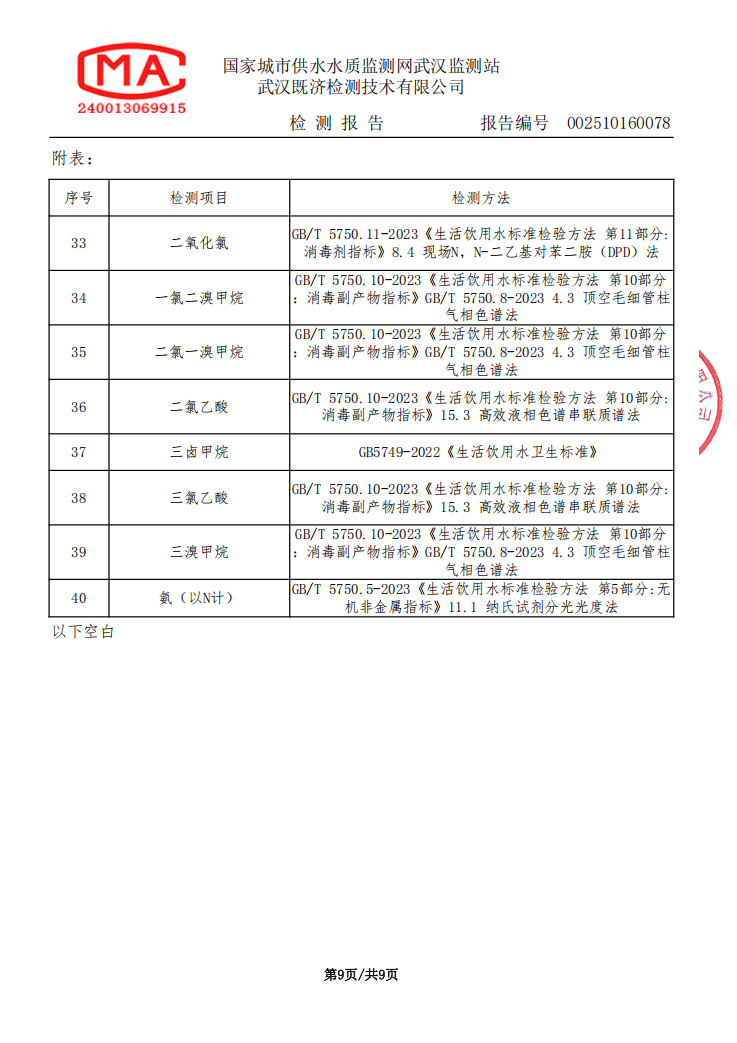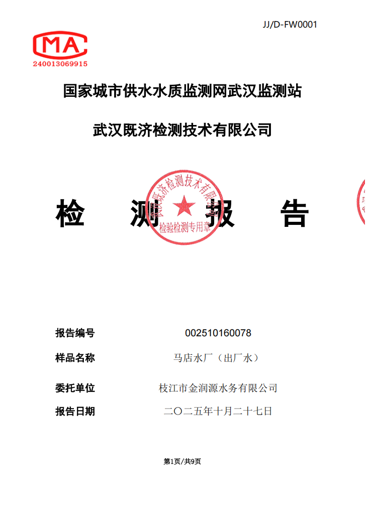 2025年10月马店水厂二次供水末梢水水质检测公告
